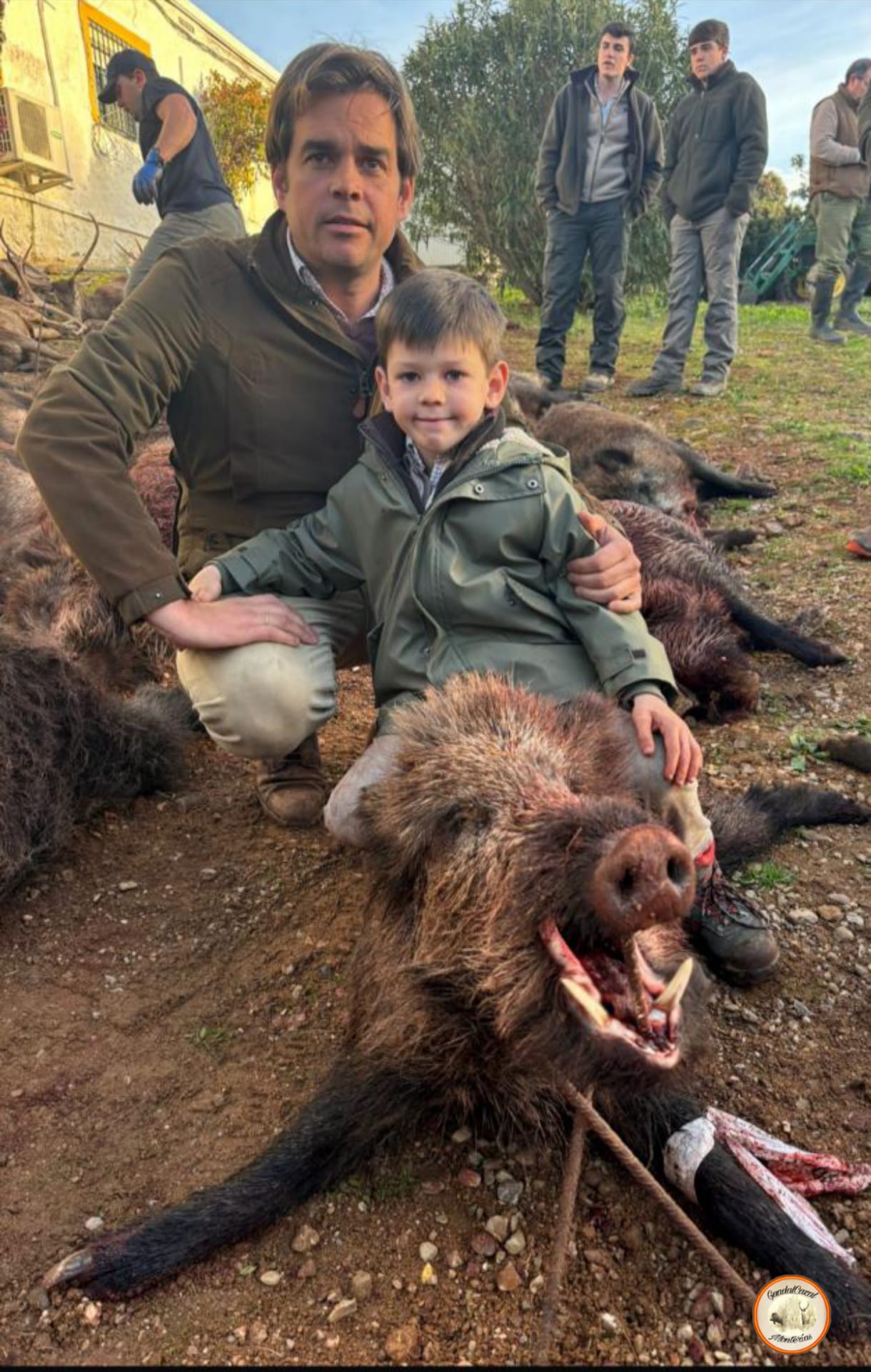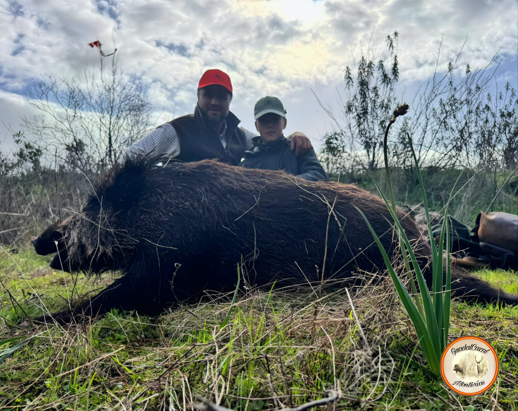 Y entre tanto, monteros que a la hora de estar puestos ya tenían el cupo de cochinos hecho, como Nuria y Pepe, que a las 12:30h ya lo tenían cubierto, abatiendo un bonito navajero y dos enormes cochinas, sorprendiéndolos por su tamaño, y viendo un sinfín de cochinos pasar luego por la postura.