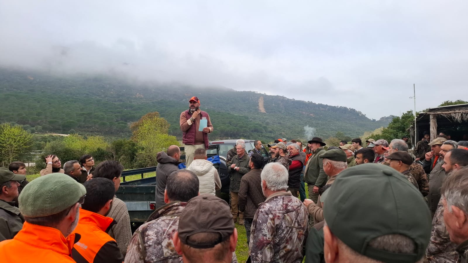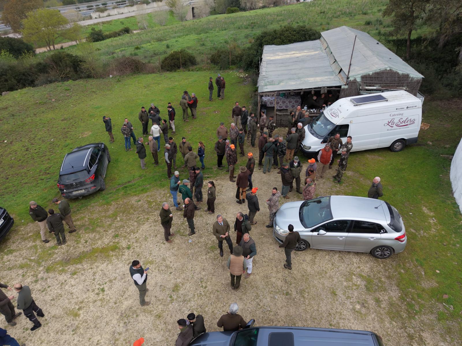 Con el sorteo de los 90 puestos ya realizado, el sábado 28 de febrero amanecimos en Los Barrios con un magnífico día. Despejado, sin viento, y con buena temperatura. Algo inusual en la zona en esta época del año. Cierto es que en las partes altas de la finca la niebla hizo acto de presencia en los primeros compases de la montería, pero pronto se disipó dejando un día extraordinario para el monteo, solo molestado por algunas rachas de viento puntuales por aquellos enclaves altos linderos con La Almoraima.