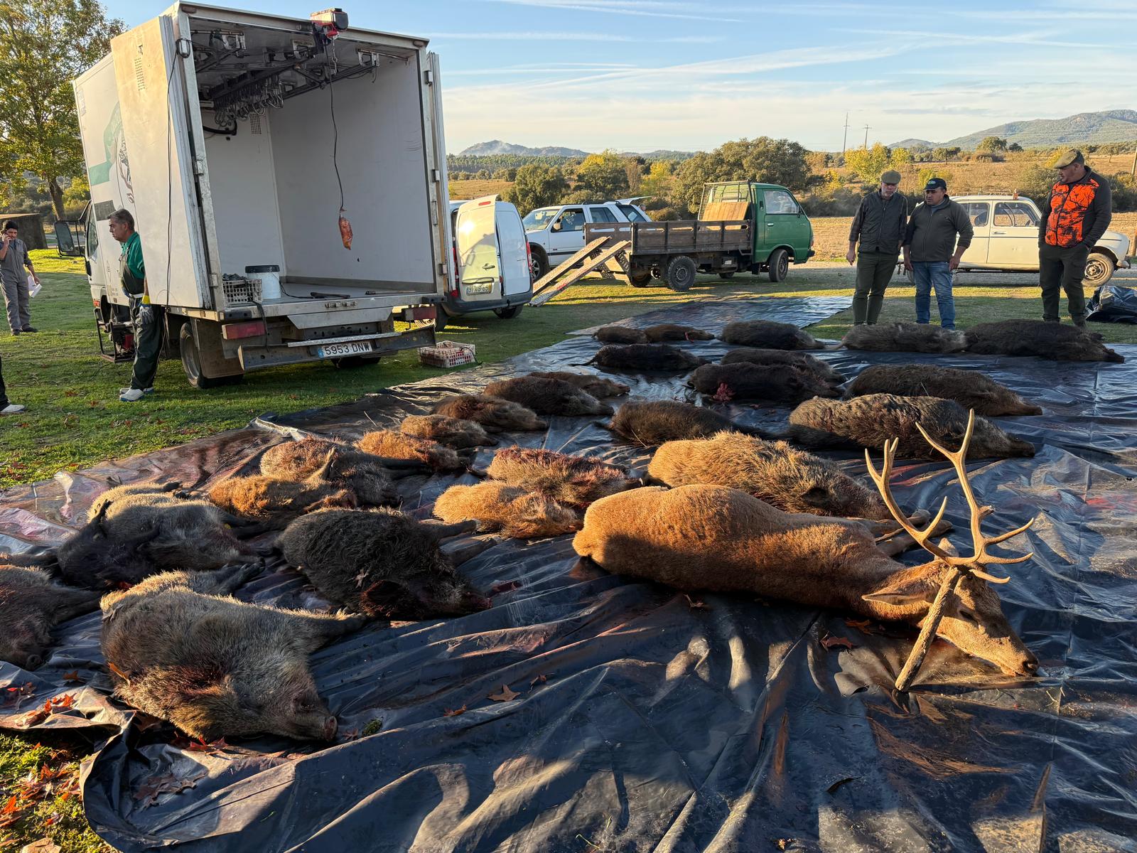 Los monteros fueron citaron a las 8:30h, dando comienzo el sorteo a las 8:45h. Dia soleado con buena temperatura donde las 27 posturas abatieron un total de 28 cochinos cobrados y 1 venado, quedando algunos jabalíes más sin poder recoger por lo complicado del terreno en el que se encontraban.
