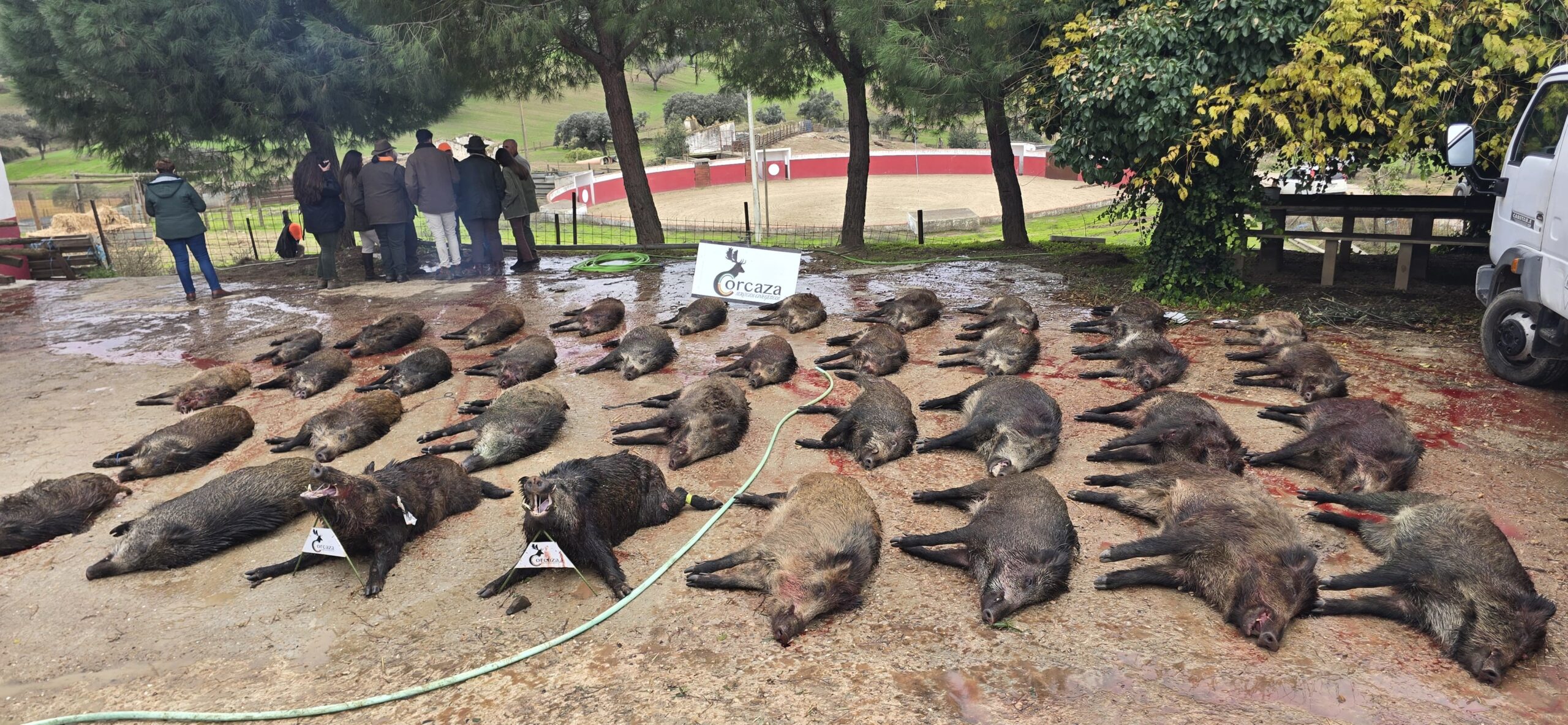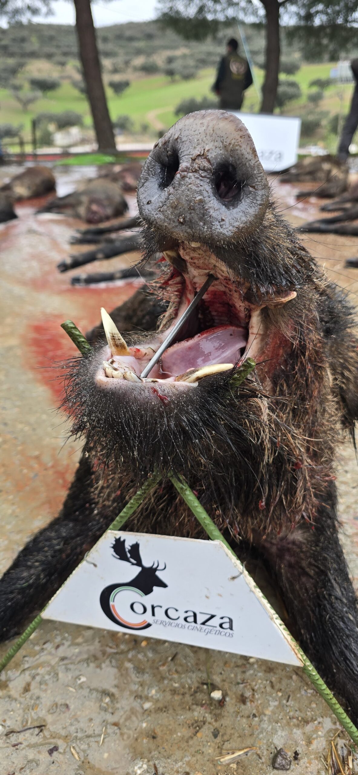 Los cochinos dieron juego, con carreras, testeros y agarres espectaculares. A las 13:50h comenzó la recogida de perros, poniendo fin a una montería auténtica, animada y muy disfrutada por todos. El plantel final dejó 43 cochinos, entre ellos dos grandes navajeros que destacaron por sus imponentes defensas.