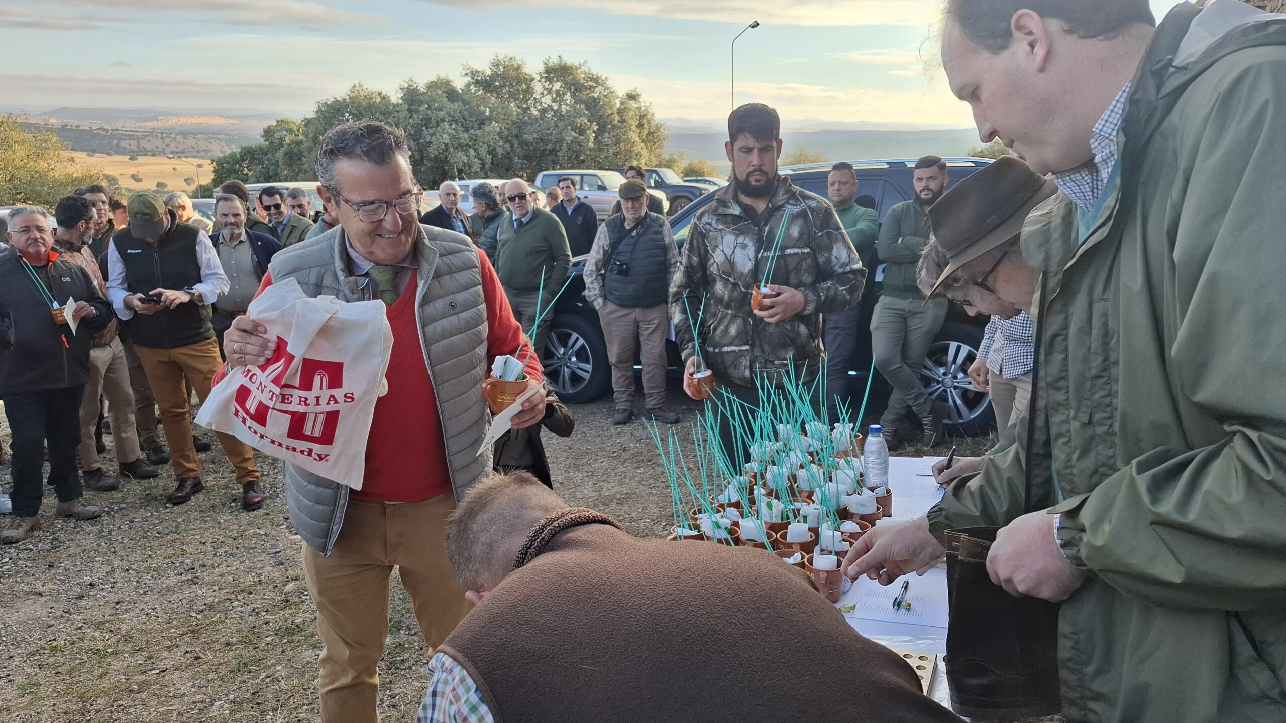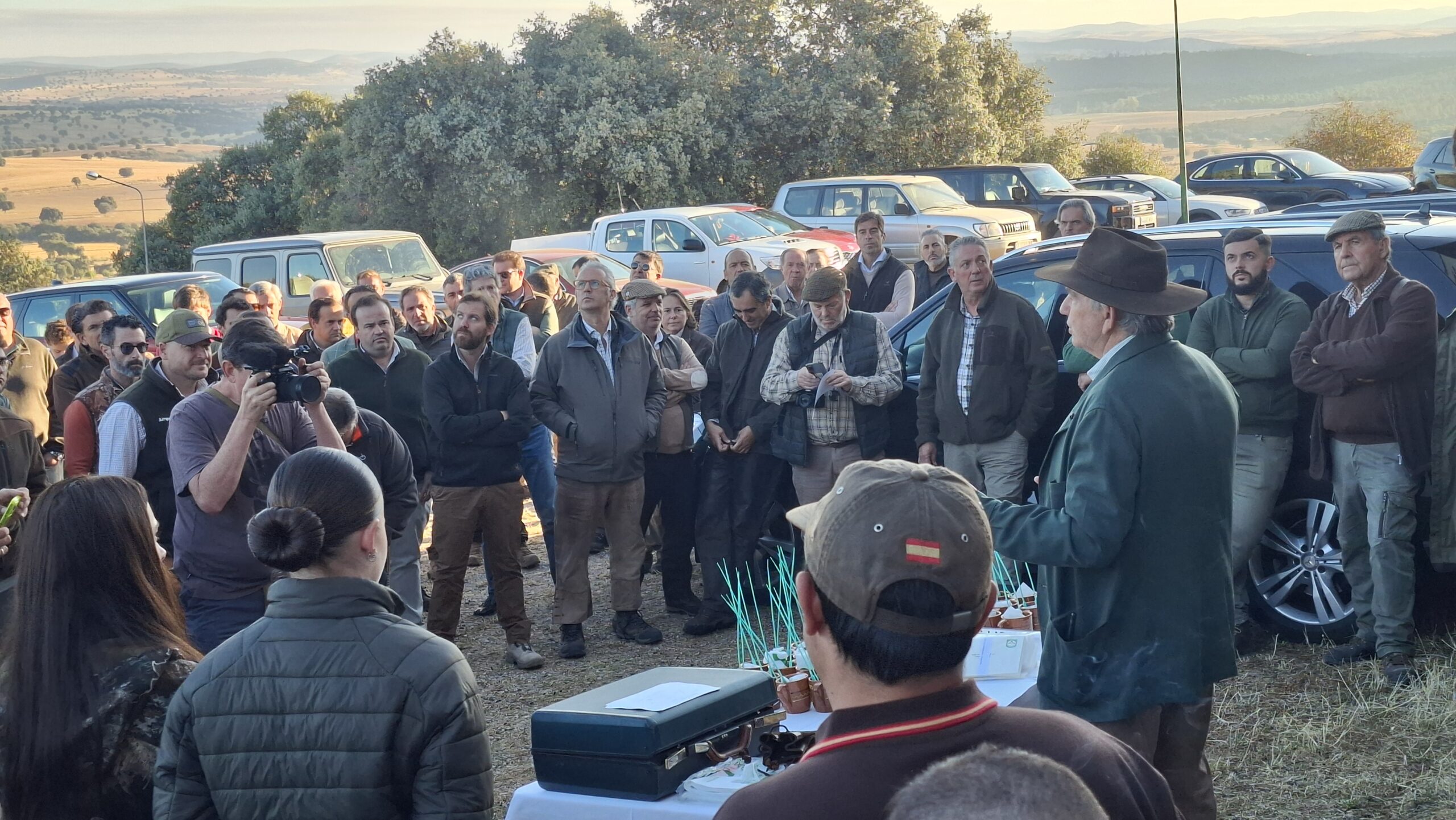 A las 8:00h de la mañana del 11 de octubre, con el termómetro marcando 12ºC, salía la comitiva hacia la Ermita de San Andrés, a media hora de Almuradiel, donde eran citados los monteros para desayunar y sortear las 48 posturas que hoy cerraban la Sierra del Agua, primera de las 4 manchas que componen la Acción 2025-2026 de la Sierra del Viso.