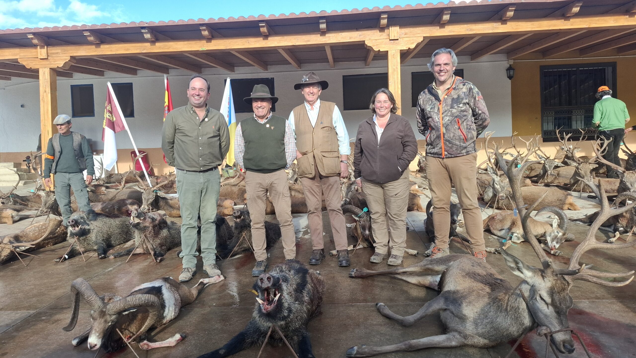 Una buena comida, (magnífico catering), la imposición de insignias a los monteros más destacados de la jornada por parte de la alcaldesa, y la foto final de familia con los trofeos abatidos, pusieron el punto y final a esta primera montería de Gescaza en la Sierra del Viso. Una jornada maravillosa en la que prácticamente todos los puestos, salvo dos o tres, jugaron sus lances y triunfaron, y en la que todo el mundo disfrutó de una montería a la antigua usanza, algo que ya “per se” es digno de conocer.
