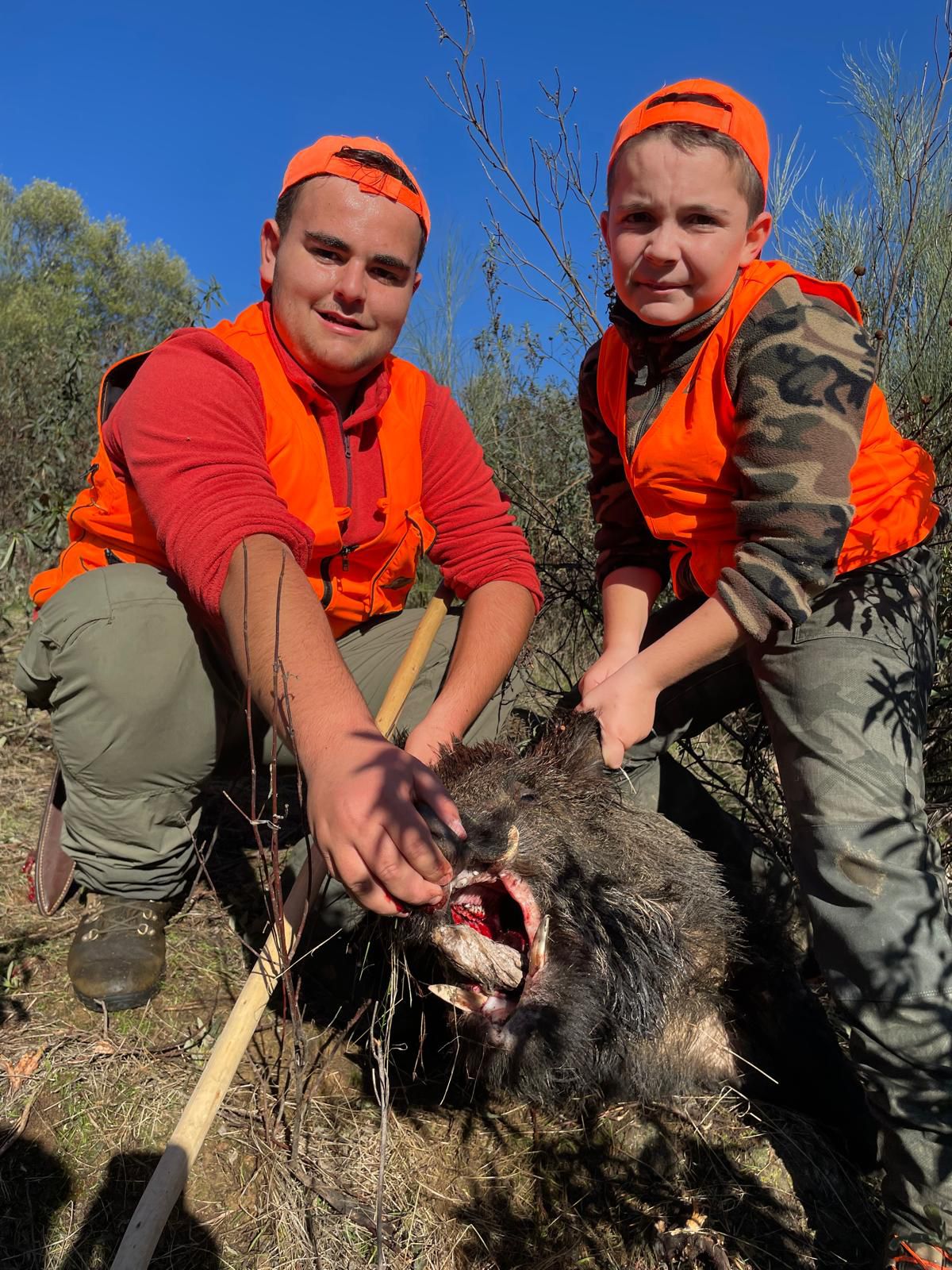 Destacar la fortuna de los hermanos Antonio y Virginio Alonso Hernández que se hicieron con dos de los mejores jabalíes, a los cuales hay que echar el metro.