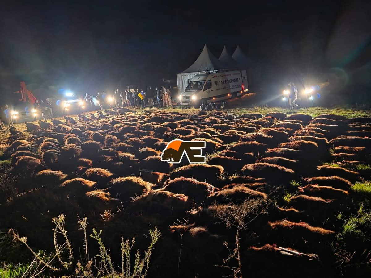 Gracias al equipo de rehalas por su RECITAL y el gran trabajo de sus canes y desde luego al equipo de secretarios, sacadores y arrieros, que a las 19:00h tenían los 216 jabalíes sacados y colocados.