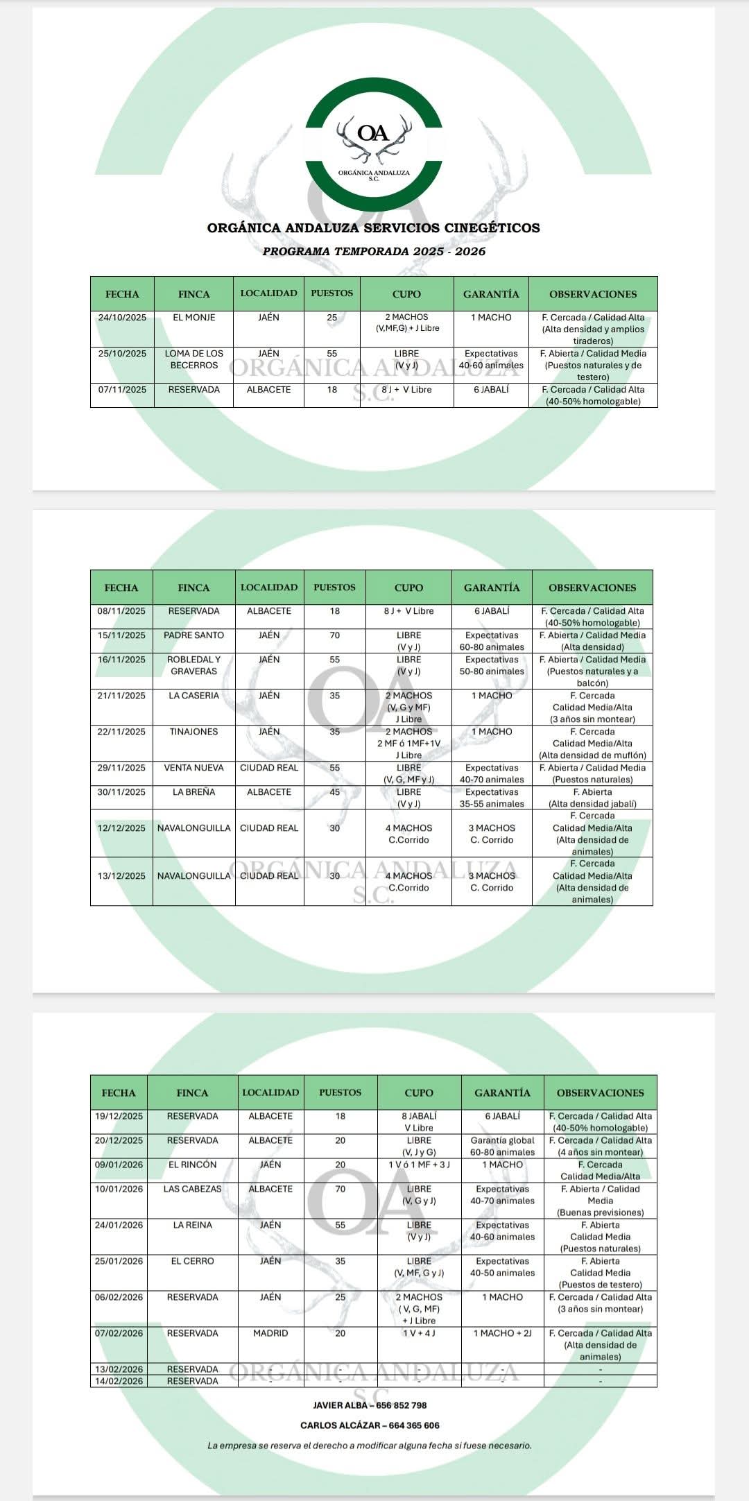 El día 24 de octubreORGÁNICA ANDALUZA SC montea EL MONJE, en Jaén, extraordinaria finca cercada con abundante caza y una calidad de trofeos que os va a sorprender.