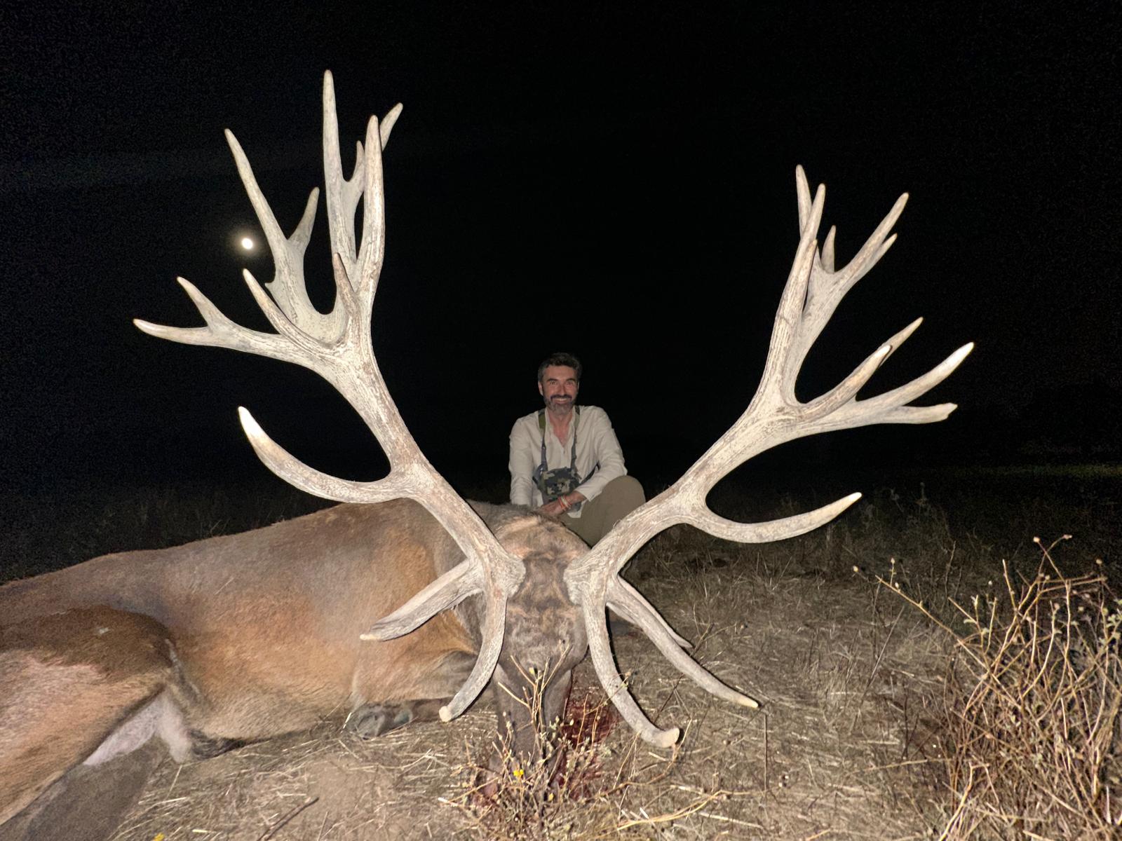 Al final, entre dos luces, y cuando ya daban por perdido tan soberbio animal, dieron con él y sin pensarlo, se la jugó el cazador con un precipitado lance en la lejanía, pudiendo abatirlo de certero disparo.