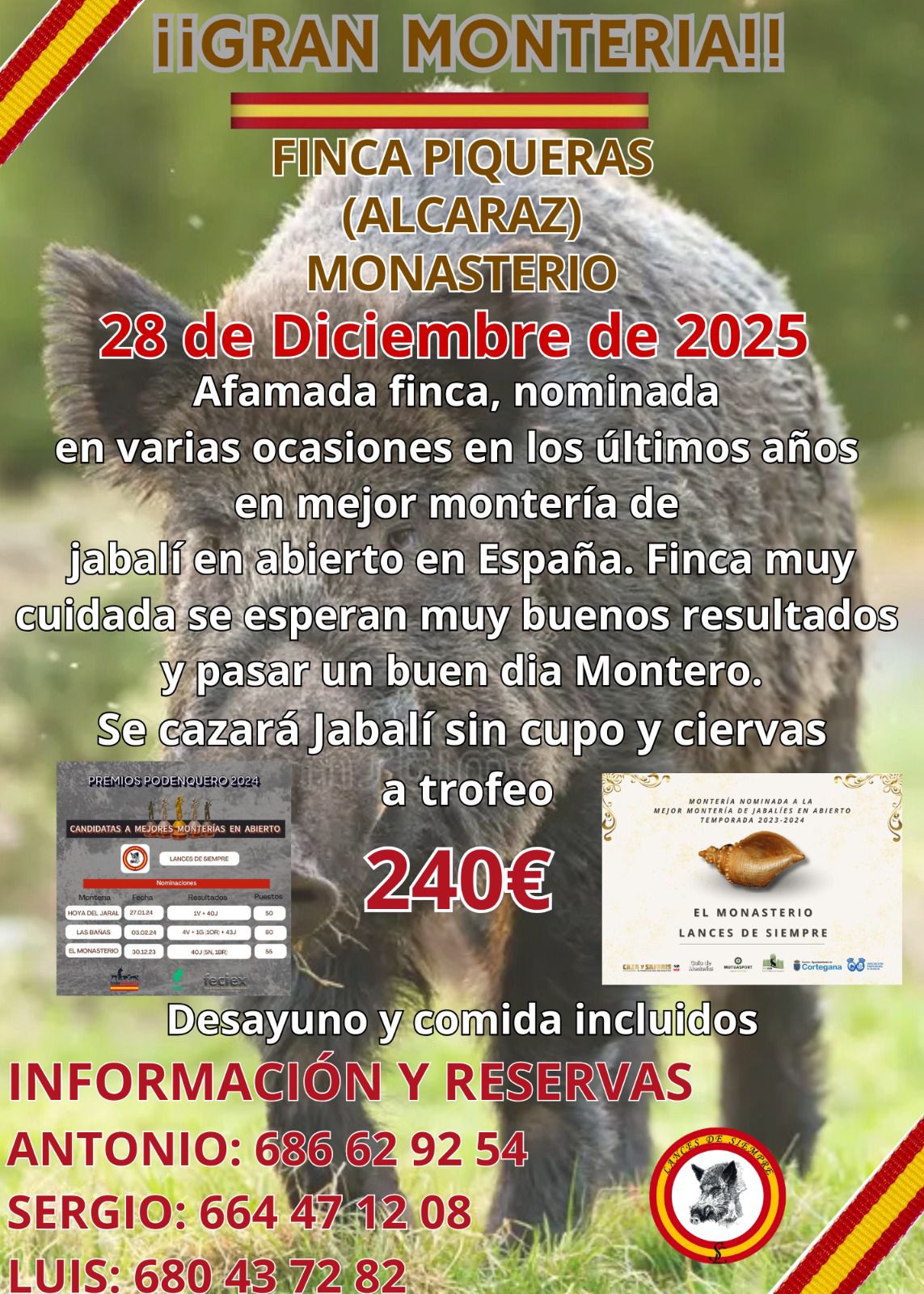 Con más del 80% del calendario vendido y un buen número de monterías completas, LANCES DE SIEMPRE anuncia una magnífica noticia para sus seguidores y cazadores en general.