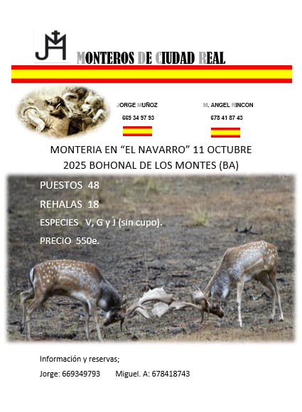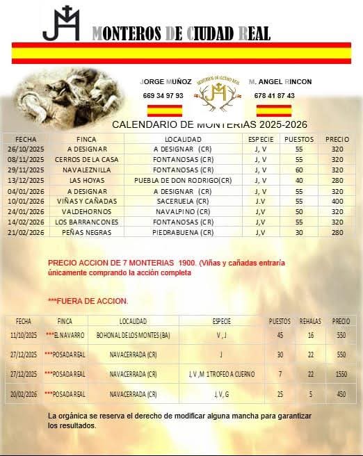Un calendario prácticamente completo, queda algún puesto puntual en alguna montería, que nos va a dar muchas satisfacciones y alegrías, pues nos va a dejar muy buenos resultados y algunos trofeos de los que no se matan todos los días en abierto.