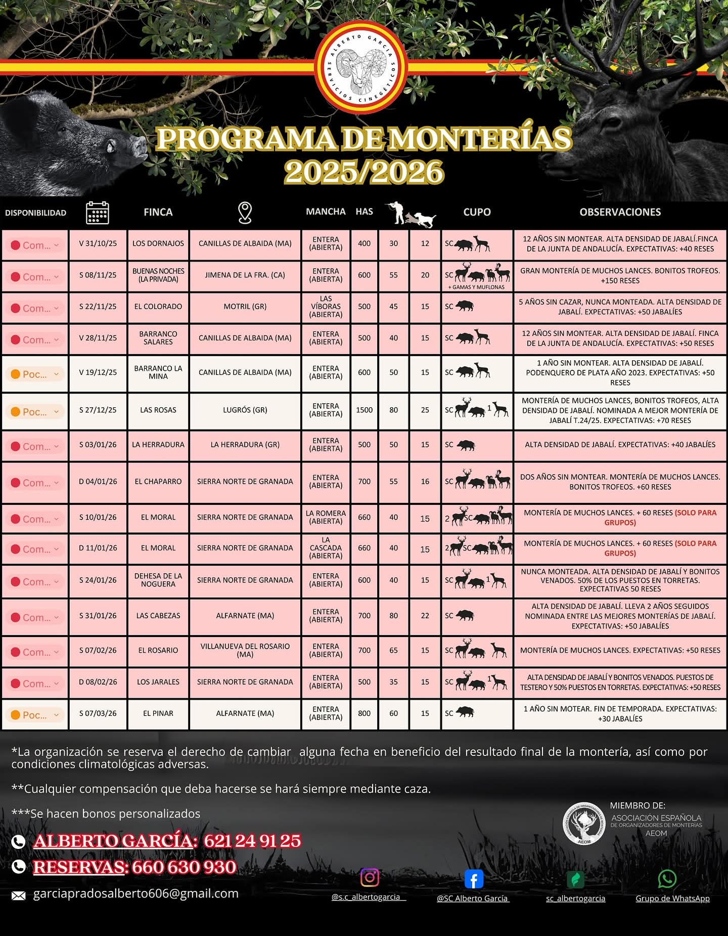 Con Las Cabezas y Dehesa de la Noguera colgando el cartel de No hay billetes, del calendario de 15 monterías que el joven organizador granadino ha confeccionado para esta temporada sólo quedan puestos en tres de ellas: Barranco de la Mina, Las Rosas y El Pinar.
