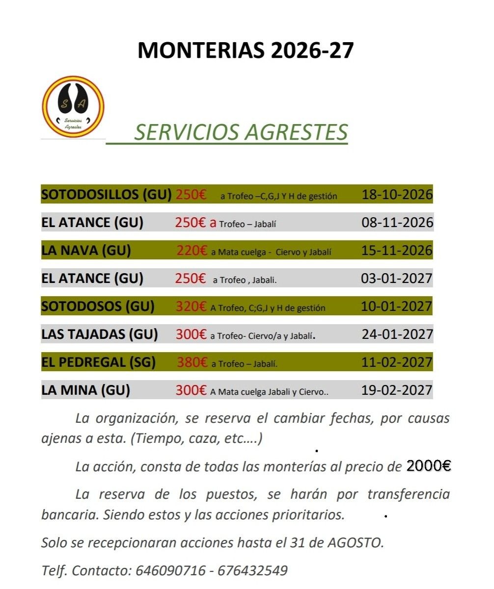 Servicios Agrestes publica su programa montero 2026-2027